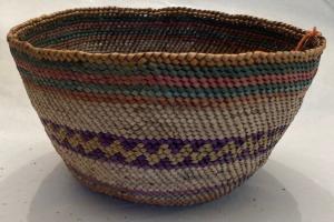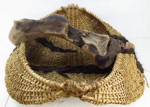 Antique Primitive Indian ? Bear Hair Drift Wood Handle Hand Made Basket ?
