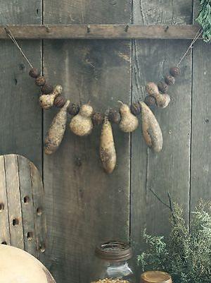 Primitive Early Homestead Look Dried Gourd & Nut Garland