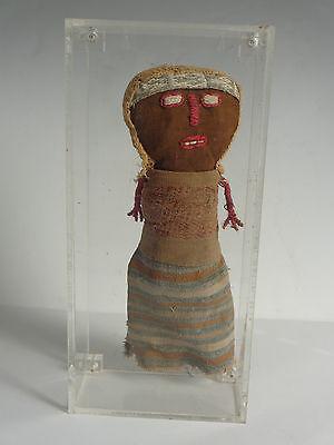 Vintage Antique Peruvian CHANCAY DOLL Folk Art Textile LUCITE MOUNTED CASE