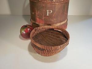 AAFA Melon Basket Scarce Side-Handle Red Oak Splint Small Antique Splint Basket