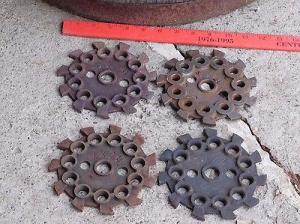 antique cast iron CORN PLANTER PLATE HAYES? GEAR RUSTIC DECOR wall table (4)