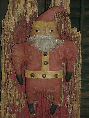 Primitive Grungy 11" Christmas Rusty Bell Santa Claus Doll~ Ro's Cluttered Attic