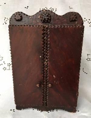 Antique Tramp Art Cabinet Box Miniature Folk Art Cupboard Spices or Child Play
