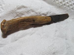 ANTIQUE STAG HANDLE KNIFE - ORIGINAL - HANDMADE - IRON BLADE