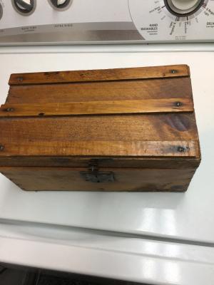 Antique Primitive Folk Art Round Top Wood Lunch or Tool Box