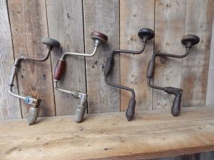 4 Old Vintage Carpenter''s Wood Brace Drills ~ Carpentry Wood Working Tools