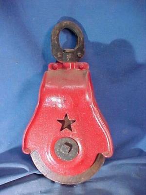 Antique BARN PULLEY Collection-CAST IRON w RED STAR DESIGN Wood Wheel