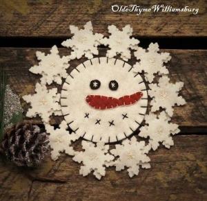 Primitive Stitchery CHRISTMAS Snowman Snowflakes Penny Rug ~ Winter Candle Mat