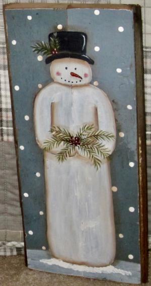 *~*PRIMITIVE*~* HP FOLK ART PRIM SNOWMEN * PINE * WINTER *~* OLD RECLAIMED WOOD