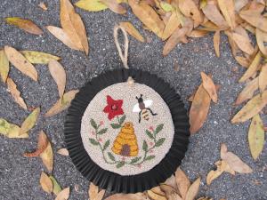 Primitive Punch Needle Bee Hive Tart Tin Folk Art Country Handmade New