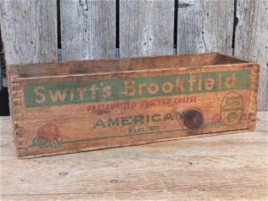 Antique Primitive VTG Wood SWIFT BROOKFIELD Cheese Crate Advertising Box