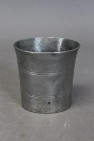 A FINE 18TH C PEWTER BEAKER OR CUP IN GREAT OLD SURFACE AND CONDITION