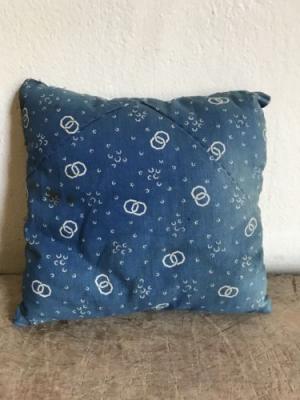 Handmade Small Early Pillow Antique Blue & Black Calico Fabric AAFA Textile