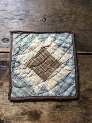Early Antique Blue Brown Homespun Linsey Woolsey Quilt Square Table Mat AAFA