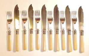 NICE 19TH CENTURY SET OF 6 PAIRS OF CUTLERY WITH SILVER COLLARS