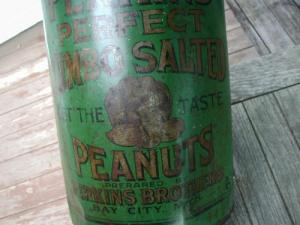 Old/Vintage Perkins Perfect Jumbo Salted Peanuts Tin Canister Nice Graphics!