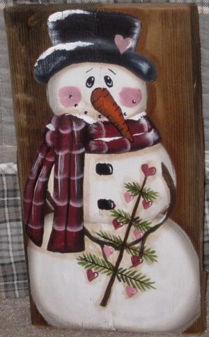 *~*PRIMITIVE*~* HP FOLK ART PRIM SNOWMEN *~* HEART TREE *~* OLD RECLAIMED WOOD