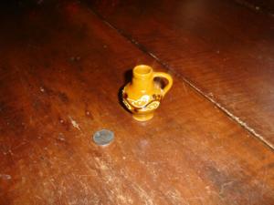 A RARE , AMERICAN ,MINIATURE DECORATED REDWARE HAND THROWN PITCHER, GORGEOUS