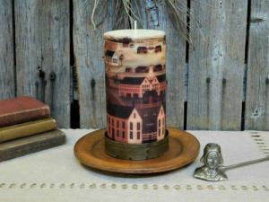Vintage Primitive Saltbox House Candle & Holder "Salem Treenware" SET
