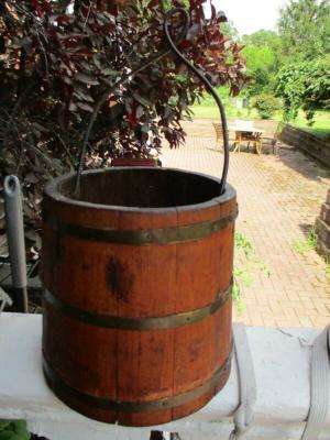 PRIMITIVE HANDMADE 1800'S WOODEN WATER / GRAIN BUCKET 13"X14"X12"