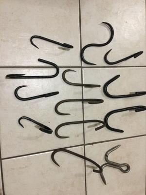 LOT 13 ANTIQUE VTG MEAT BARN HOOKS HAND WROUGHT IRON FARM TOOL STEAMPUNK COUNTRY