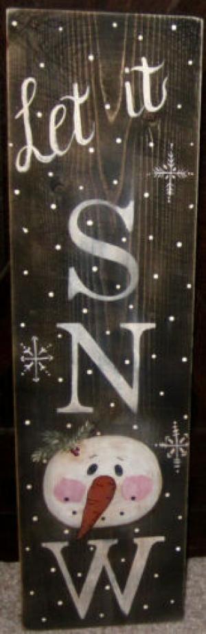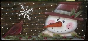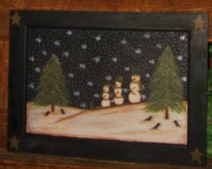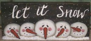 *~*PRIMITIVE*~* HP FOLK ART PRIM SNOWMEN *~* LET IT SNOW *~* WINTER *~* BOARD