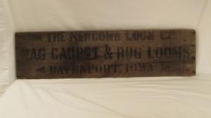 Rare Early Rag Carpet Wooden Sign "Rag Carpet & Rug Looms Davenport, Iowa"