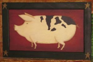 *~*PRIMITIVE*~* HP FOLK ART PIG *~* DOOR PANEL