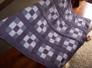 VINTAGE LAP QUILT, or Wall Hanging Quilt~ 31" x 38" Blues and Burgundy~ soft!!