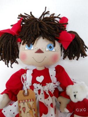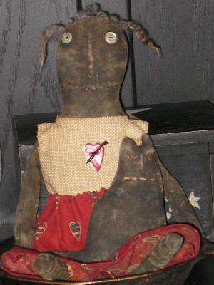 PRIMITIVE VALENTINE RAGGEDY IN PIGTALES AND BOYDS BEAR