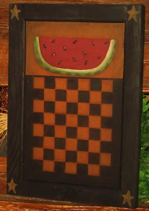 *~*PRIMITIVE*~* HP FOLK ART CROW CHECKERBOARD ~ WATERMELON ~ STARS ~ DOOR PANEL
