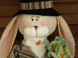Primitive Folk Art Mr. Bunny Rabbit Doll with Top Hat & Carrot