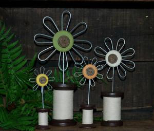 Set of 4 Wire Flowers on Thread Spools --- adorable !!