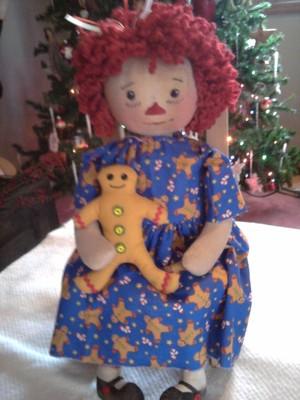 Primitive Folk Art Christmas Raggedy Ann and Gingerbread Man Doll
