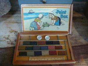 Vintage German Childs Wooden Paint Box with Original Unused Paint Blocks