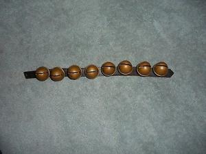 Antique Brass Sleigh / Jingle Bells ~ 8 Bells on 5/8" Leather Strap 13" L