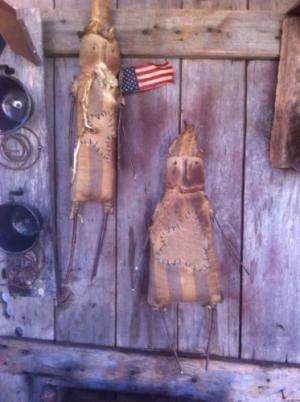 Primitive Grungy Grubby Extreme Folk ARt Uncle Sam and Liberty doll Americana
