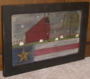 *~*PRIMITIVE*~* HP FOLK ART PRIM FLAG * SALTBOX * SHEEP * CROW *~* DOOR PANEL
