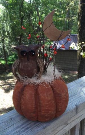 Primitive Pumpkin With Mini Owl