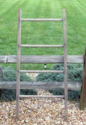 Authentic Antique Wooden 4 Rung 4' 4" Tapered Ladder, Patina Decor!