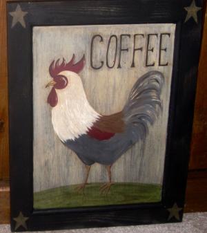*~*PRIMITIVE*~* HP FOLK ART PRIM ROOSTER *~* COFFEE *~* DOOR PANEL