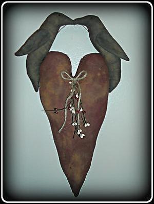 Primitive Valentine!! HEart with Kissing Crows Door Hanger!!