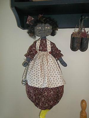PRIMITIVE RAGGEDY BLACK FOLK ART PLASTIC BAGHOLDER MAMMY DOLL