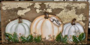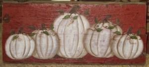 *~*PRIMITIVE*~* HP FOLK ART PRIM WHITE PUMPKINS *~* FALL*~* RECLAIMED BARN WOOD