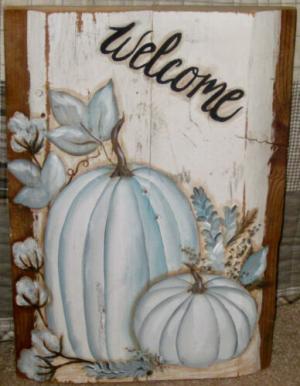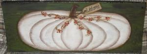 *~*PRIMITIVE*~* HP FOLK ART PRIM WHITE PUMPKIN *~* BERRIES *~* WELCOME *~* BOARD