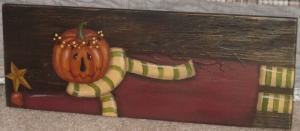 *~*PRIMITIVE*~* HP FOLK ART PRIM HARVEST SIGN *~* PUMPKIN *~* 36" MINK STRETCHER