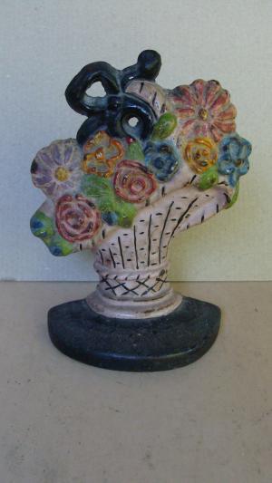ca 1900 diminutive cast iron flower basket doorstop, orig. paint, no reserve *