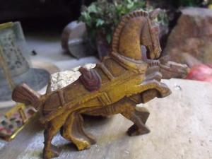 Primitive Antique Cast Iron Double Horse Figure Shabby Chippy Paint