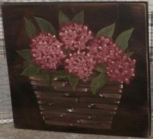 *~*PRIMITIVE*~* HP FOLK ART PRIM BASKET OF FLOWERS *~* RECLAIMED WOOD