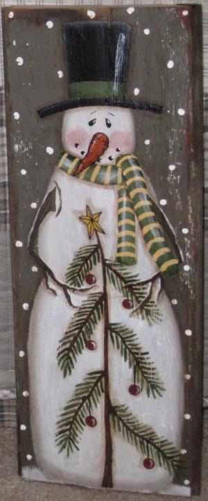 *~*PRIMITIVE*~* HP FOLK ART PRIM SNOWMEN *~* TREE *~* WINTER *~* RECLAIMED WOOD